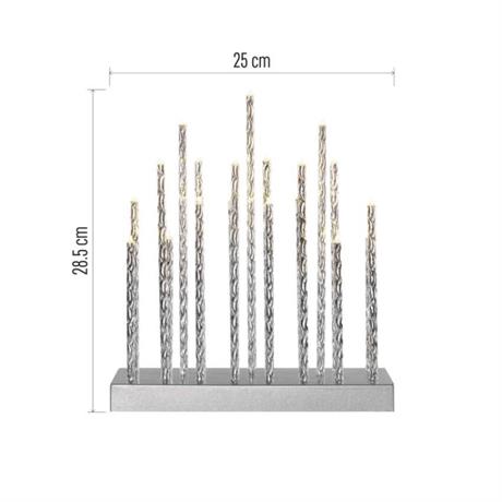 Vánoční LED svícen svým decentním světlem doladí útulnou atmosféru vašeho domova, ať už ho postavíte na sváteční stůl, parapet či poličku. Jeho teplá barva světla v kombinaci s elegantním designem z něj dělají nevšední dekoraci určenou nejen pro vánoční večery. A co je důležité – nechtěných požárů se bát rozhodně nemusíte! Jako zdroj světla využívá místo tradičních svíček energeticky úsporné LED diody napájené z AA baterií.