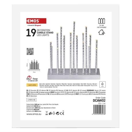 barva drátu: neuvádí se|barva světla: teplá bílá|časovač: ano|dálkový ovladač: ne|délka přívodu: neuvádí se|krytí: IP20|materiál: plast|počet LED: 19|použití: vnitřní|příkon: 1,2 W|prodejní obal: 1 ks, krabice|produkt: svícen|rozměr: 25 × 28,5 cm|typ napájení: baterie 3× AA (není součástí balení)|vstupní napětí: neuvádí se|výstupní napětí: 4,5 V DC|záruční doba: 2 roky|zdroj svícení: LED|životnost: 10 000 hodin