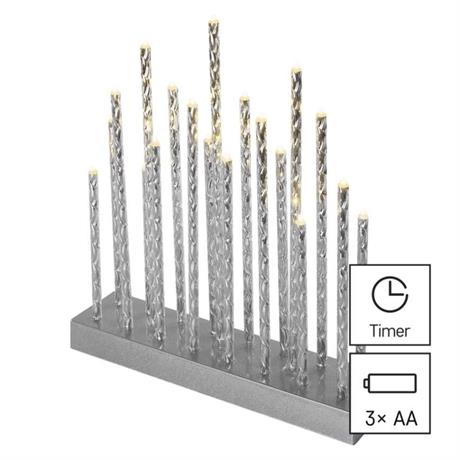 EMOS LED svícen stříbrný, 28,5 cm, 3x AA, vnitřní, teplá bílá, časovač