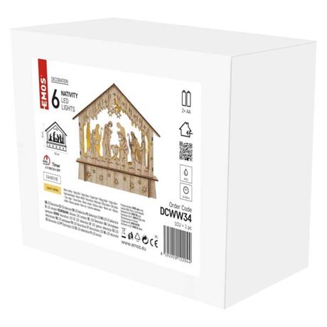 Atmosféru tradičních Vánoc, plnou vůní perníčků, zvuků vánočních koled a nezaměnitelné chuti bramborového salátu, lze vytvořit pomocí dřevěných dekorací. Vánoční betlém, vyrobený ze dřeva, je osvětlen teplým bílým světlem, které vytváří příjemnou atmosféru. Díky napájení pomocí 2× AA baterií si můžete tuto dekoraci umístit kamkoli ve vašem interiéru. Skvěle se hodí zejména na okenní parapet, komodu nebo televizní stůl.