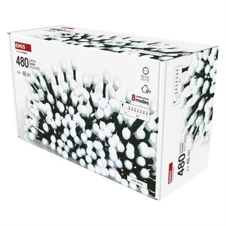 EMOS LED vánoční cherry řetěz – kuličky, 48 m, venkovní i vnitřní,studená bílá,programy,časovač