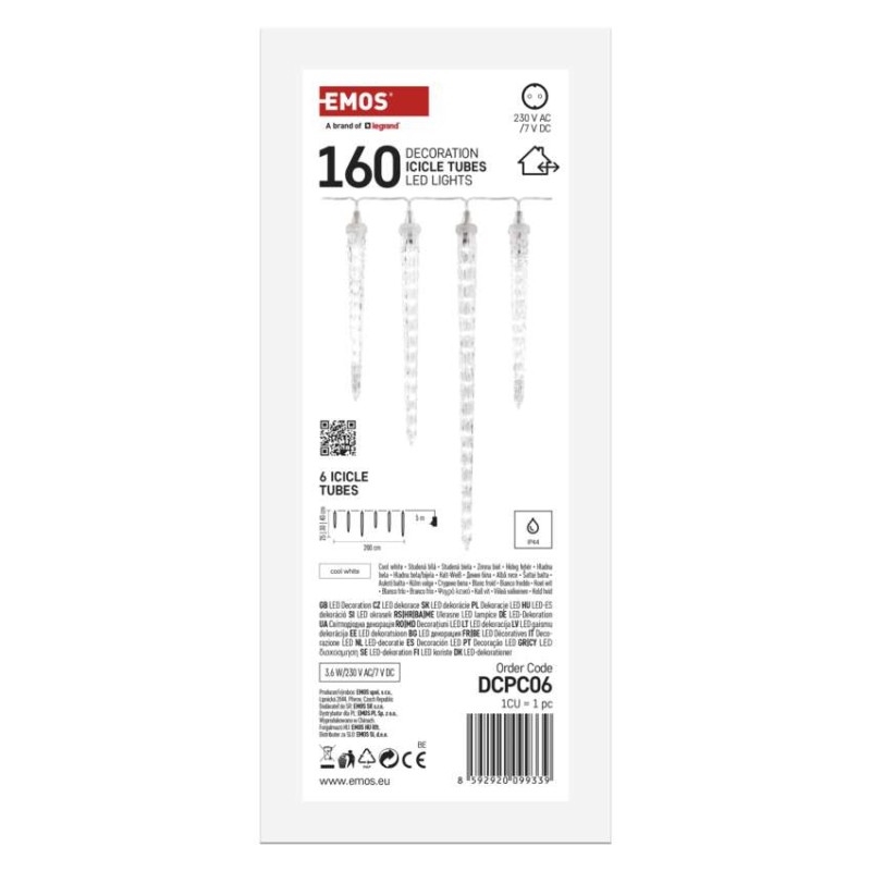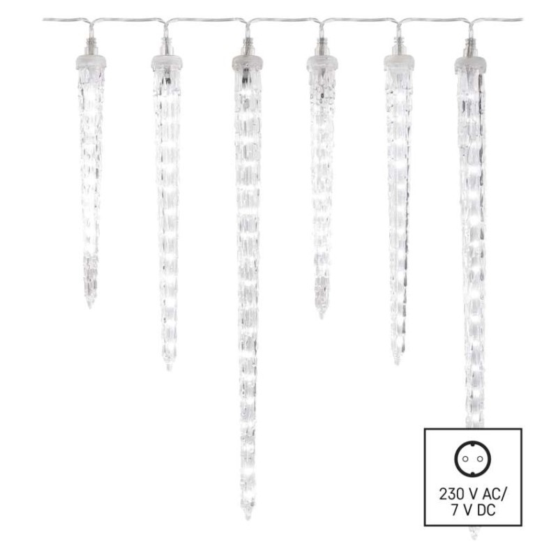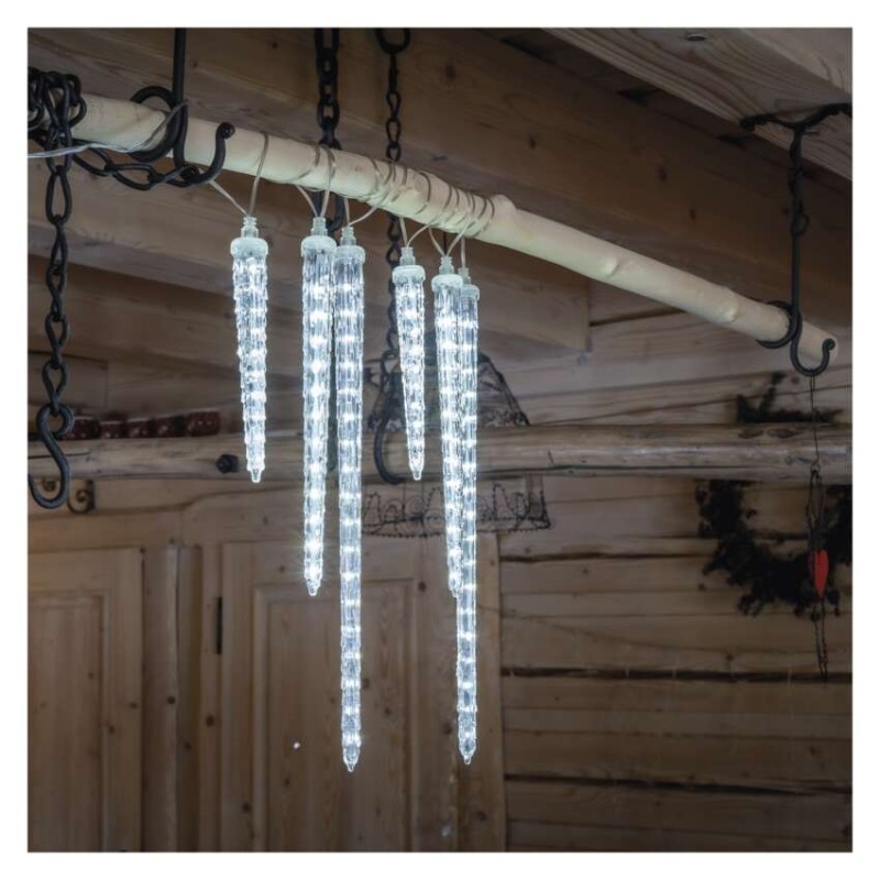 Chcete vánočně vyzdobit vaše okna, zábradlí, okraje střechy, pergolu a další místa vhodná k dozdobení? Pak právě pro vás máme vánoční svítící girlandu s šesti rampouchy, která se díky zvýšené voděodolnosti hodí do každého exteriéru i interiéru, kde krásně vynikne její studené bílé světlo. Využít ji můžete i jako stylové osvětlení na zahrádce či v interiéru restaurací, kde vkusně ozdobí i jinak obyčejný prostor. Díky dlouhému napájecímu kabelu o délce 5 m je její zapojení do elektrické sítě hračkou.