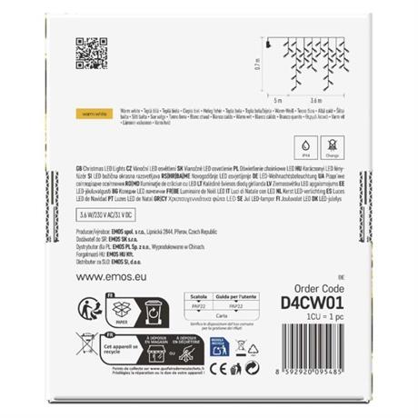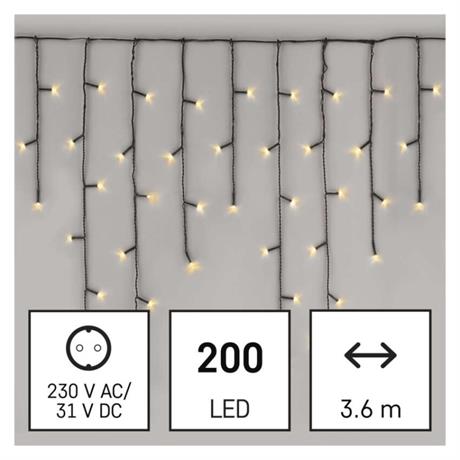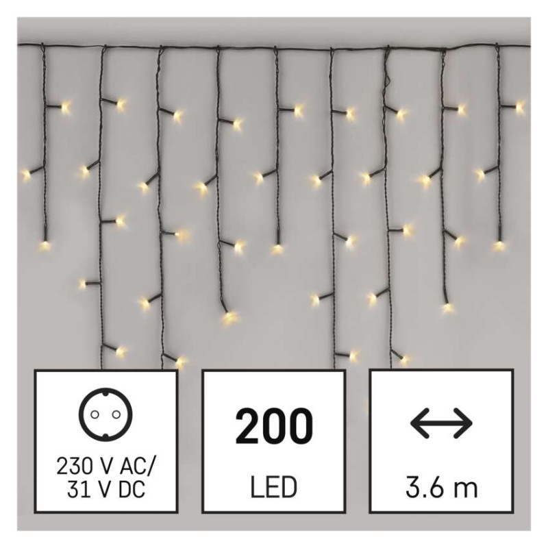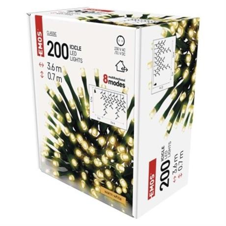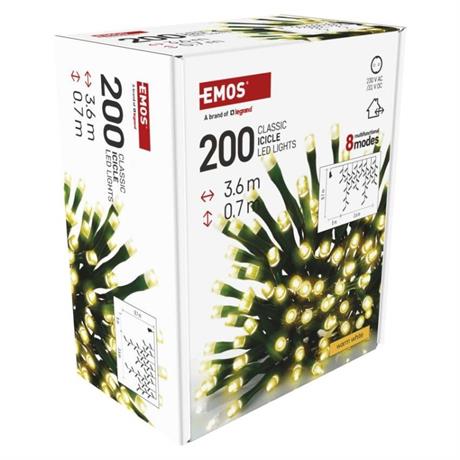EMOS LED vánoční rampouchy, 3,6 m, venkovní i vnitřní, teplá bílá, programy