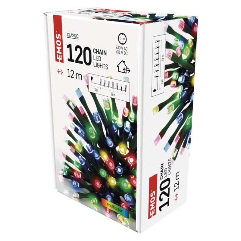 EMOS LED vánoční řetěz, 12 m, venkovní i vnitřní, multicolor, časovač