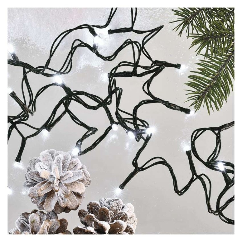 EMOS LED vánoční řetěz, 12 m, venkovní i vnitřní, studená bílá, časovač