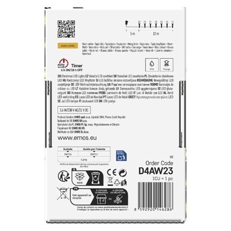 EMOS LED vánoční řetěz, 12 m, venkovní i vnitřní, teplá bílá, programy, časovač