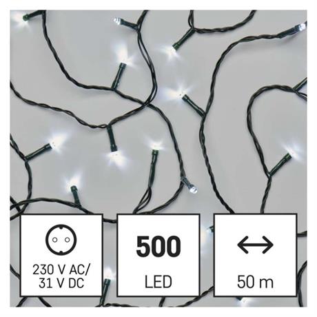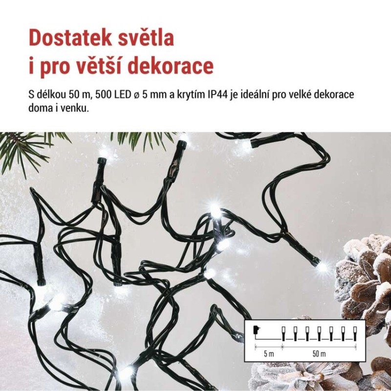 EMOS LED vánoční řetěz, 50 m, venkovní i vnitřní, studená bílá, programy, časovač