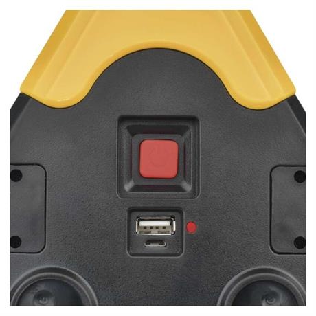 barva: černo-žlutá|baterie součástí balení: ano|doba nabíjení: –|doba svícení: 2–4,5 h|doba svícení detail: COB LED 100 % – 2 h, COB LED 50 % – 4,5 h|dosvit: COB LED 100 % – 20 m, COB LED – 10 m|fokus: ne|hmotnost: 590 g|LED indikace nabíjení: ano|LED indikace stavu akumulátoru: ne|materiál: ABS plast|maximální dosvit: 20 m|maximální světelný tok: 350 lm|nabíjecí: ano|napájení: Li-Ion|nárazuvzdornost: ano|počet režimů svícení: 5|příslušenství: USB kabel|prodejní obal: 1 ks, papírová krabička|režimy svícení: COB LED 100 %, COB LED 50 %, LED červené svícení, LED červené blikání, LED červené blikání|rozměr: 270 × 50 × 245 mm|speciální funkce: LED výstražný trojúhelník|světelný tok: COB LED 100 % – 350 lm, COB LED – 150 lm|typ baterie: 1 800 mAh/3,7 V|typ napájecího konektoru: micro USB|voděodolnost: ne|vybavení: otočná rukojeť|záruční doba: 2 roky|zdroj světla: 3× COB LED + LED červená|značka: EMOS