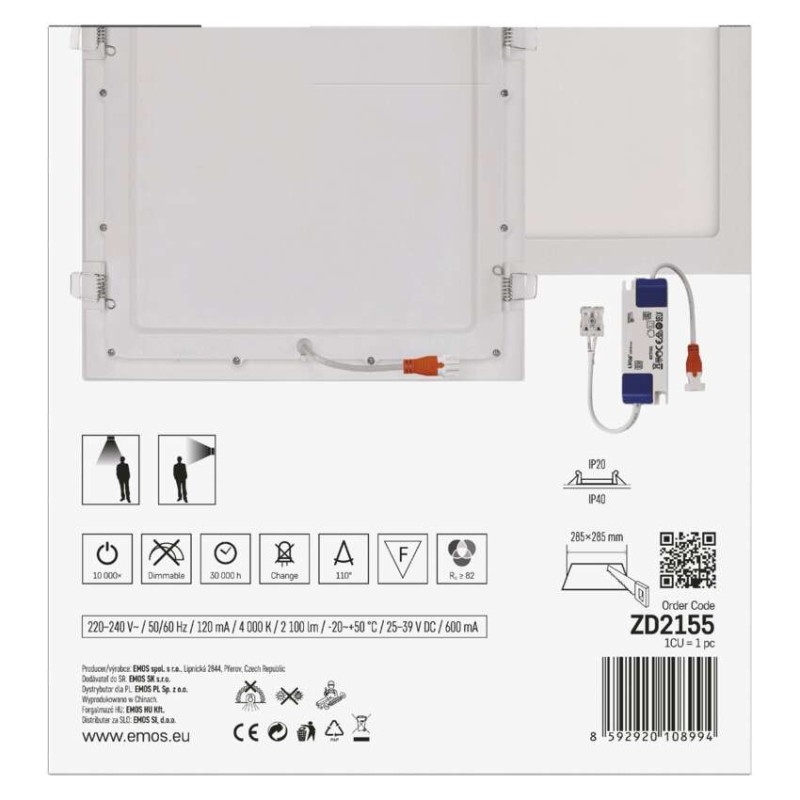 EMOS LED vestavné svítidlo NEXXO, čtvercové, bílé, 25W, neutrální bílá