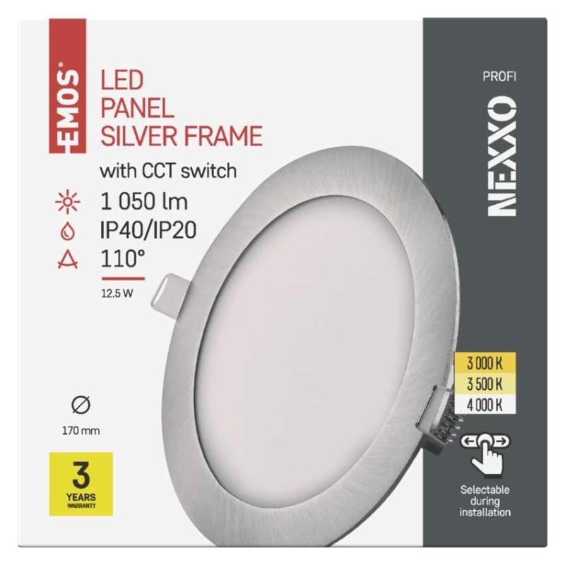 EMOS LED vestavné svítidlo NEXXO, kruhové, stříbrné, 12,5W, se změnou CCT