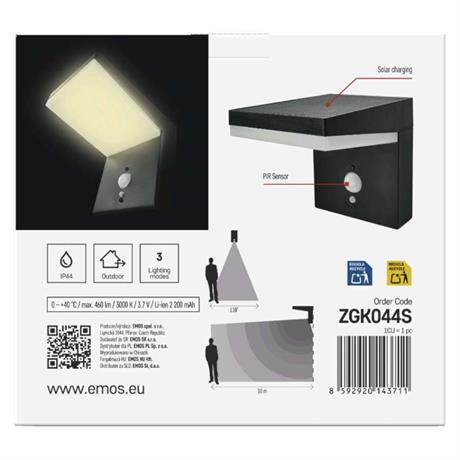 barva: černá|barva světla: teplá bílá|dosah PIR senzoru: 10 m|energetická třída použitého světelného zdroje: –|fotovoltaický článek: 2,1 W|frekvence: –|index podání barev (CRI): > 80|kategorie: CLASSIC|krytí: IP44|materiál: hliník (Al)|materiál difuzoru: plast|napájení: Li-Ion akumulátor 3,7 V/2 200 mAh|napětí: –|patice (uchycení žárovky): –|PIR senzor: ano|příkon: 4,4 W|prodejní obal: 1 ks, krabička|řada: VEREA|rozměr: 154 × 107 × 130 mm|rozsah pracovní teploty: 0 ~ +40 °C|soumrakový spínač: ano|světelný tok: max. 460 lm|teplota chromatičnosti: 3000 K|vestavěný vypínač: ano|žárovka součástí balení: –|zdroj světla: LED|životnost: 25 000 h