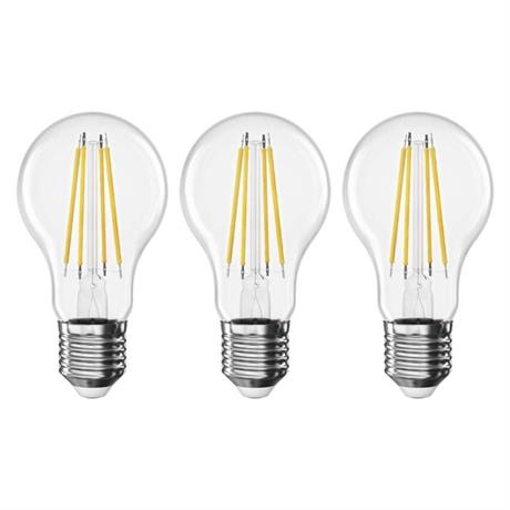 barva světla: teplá bílá|energetická třída: A|index podání barev (CRI): 80|kompatibilita: –|náhrada za žárovku: 75 W|napětí: 230 V~/50 Hz|notifikace do mobilní aplikace: –|ovládání hlasovými asistenty: –|patice (uchycení žárovky): E27|počet čipů: 4|počet spínacích cyklů: 30 000|podporované OS: –|přenosová frekvence: –|příkon: 5 W|prodejní obal: 3 ks, krabička|protokol: –|řada: FILAMENT|rozměr: 60 × 60 × 105 mm|stmívatelná: ne|světelná účinnost: 212 lm/W|světelný tok: 1 060 lm|technologie: LED|teplota chromatičnosti: 2 700 K|tvar: A60|typ čipů: COB|účiník: 0,5|úhel vyzařování: 300°|záruční doba: 5 let|životnost: 50 000 hodin