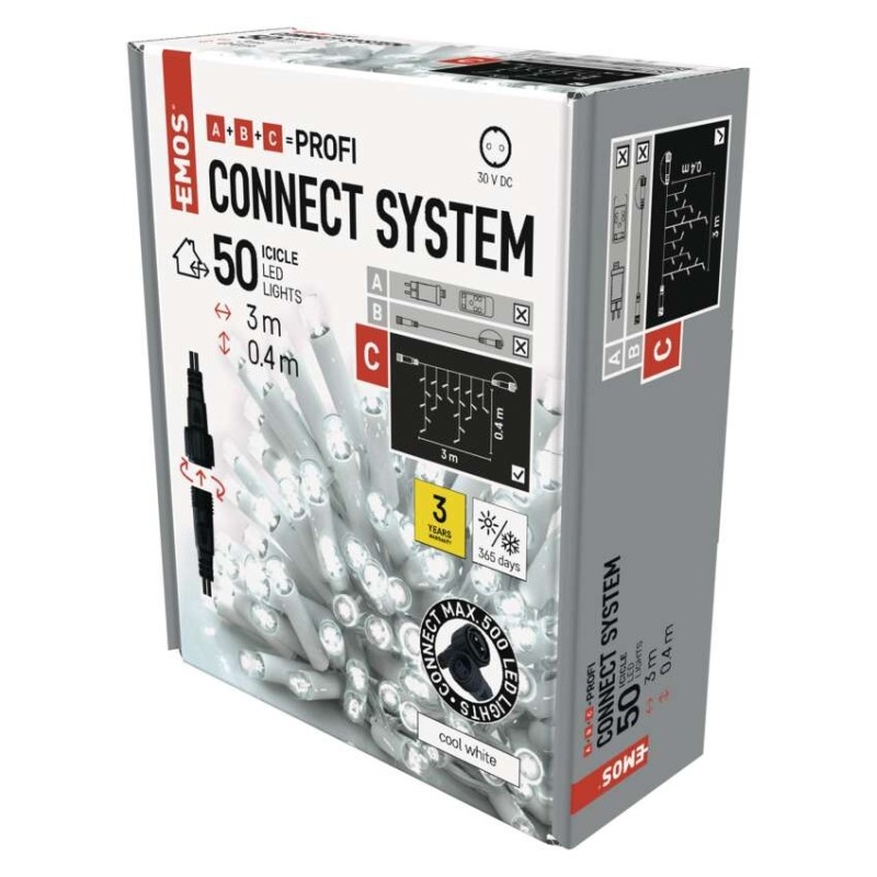 Světelné LED  krápníky (rampouchy) CONNECT SYSTEM PROFI jsou dispozici v délce 3 m a výšce 0,4 m. Hledáte-li barvu, která bude nejlépe ladit s exteriérem či interiérem vašeho domu, můžete vybírat z teplé bílé, studené bílé nebo barevných kombinací s více barvami LED světýlek na jednom řetězu.