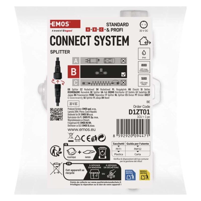 Ať už jde o vánoční výzdobu domova nebo vytvoření magické atmosféry na svatbách a oslavách. Spojovací osvětlení CONNECT SYSTEM ve verzích STANDARD a PROFI nabízí nekonečné možnosti dekorování. Základními prvky jsou napájecí zdroje (A), prodlužovací kabely a rozbočovače (B) a světelné prvky (C), které lze mezi sebou vzájemně propojovat a kombinovat. Tento typ osvětlení je ideální volbou pro velkolepou venkovní výzdobu, kde běžné délky řetězů nejsou dostačující.