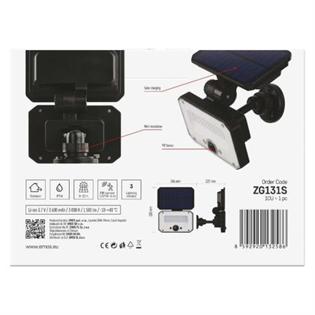 EMOS Solární LED reflektor SPILO s pohybovým čidlem, černý, teplá bílá