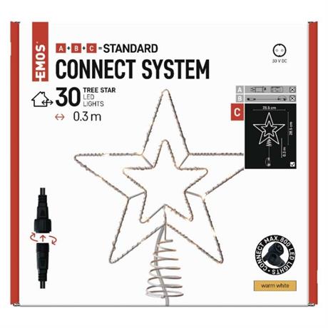 Propojovací systém CONNECT SYSTEM STANDARD je díky stupni krytí IP44 vhodný k vnitřnímu i venkovnímu použití, avšak pouze v sezónu, nikoliv po celý rok. Výhodou tohoto spojovacího systému je široká nabídka LED světelných prvků (C) v několika různých barvách. Ačkoliv je nejpopulárnějším vánočním osvětlením řetěz, ve spojovacím systému můžete vybírat podle vlastních designových preferencí z krápníků, záclon, sítí nebo hvězd na špičku vánočního stromu. Z jediného napájecího zdroje (A) připojeného k prodlužovacím kabelům, rozbočovačům (B) a světelným LED prvkům (C) je možné napájet až 800 LED světýlek.