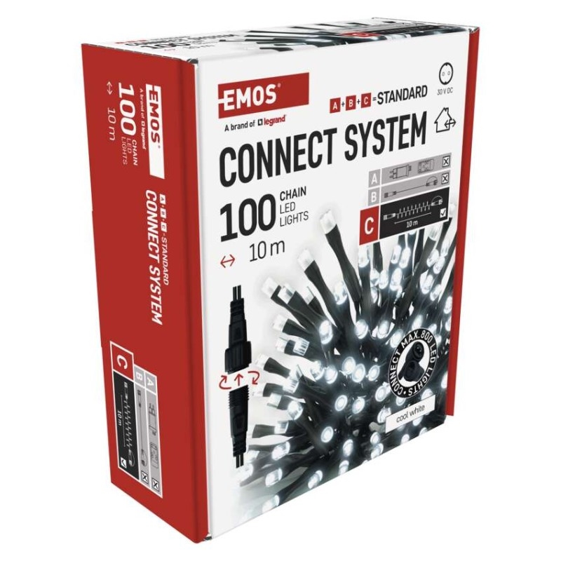 EMOS Standard LED spojovací vánoční řetěz, 10 m, venkovní i vnitřní, studená bílá