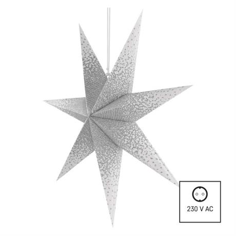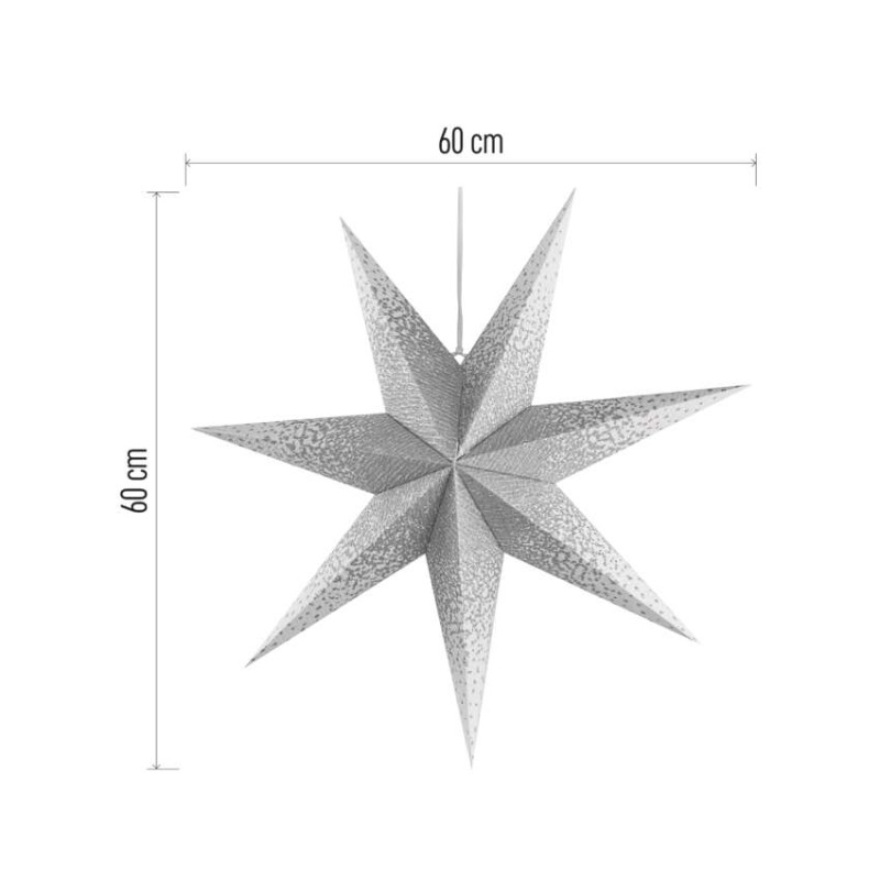 Hledáte krásnou vánoční dekoraci, která váš domov ve vteřině rozzáří? Pak vyzkoušejte závěsnou vánoční hvězdu vyrobenou ze směsi papíru a bavlny, která se stane ozdobou každého interiéru. Hvězdu o průměru 60 cm s přívodním kabelem o délce 3,2 metrů můžete zavěsit do oken, na lustr, rám dveří či kamkoliv jinam do vašeho interiéru. Tato dekorace je vybavena paticí na žárovku E14 a můžete v ní tak použít žárovku vámi preferované barvy světla. Pokud například zvolíte hvězdu v bílé barvě a dáte do ní žárovku s teplou bílou barvou světla, rozzáří se krásným zlatým světlem, které bude pronikat malými dírami vyraženými ve hvězdě. Její výhodou je i snadné složení jednoduchým utáhnutím šňůrky.