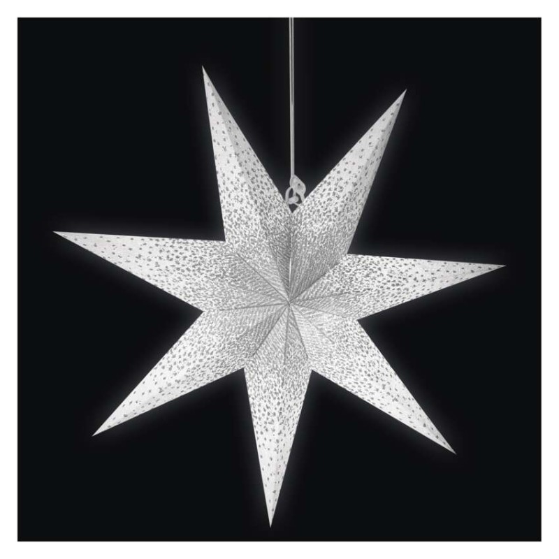 EMOS Vánoční hvězda papírová závěsná se stříbrnými třpytkami ve středu, bílá, 60 cm, vnitřní