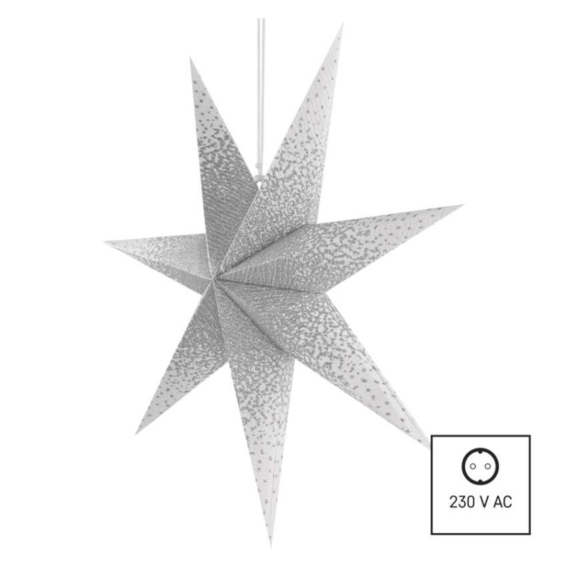 barva drátu: bílá|barva světla: neuvádí se|časovač: ne|dálkový ovladač: ne|délka přívodu: 3,2 m|krytí: IP20|materiál: papír|počet LED: neuvádí se|použití: vnitřní|příkon: 25 W max.|prodejní obal: 1 ks, krabice|produkt: hvězda|rozměr: 60 cm|typ napájení: síť|vstupní napětí: 230 V AC|výstupní napětí: neuvádí se|záruční doba: 2 roky|zdroj svícení: E14|životnost: 10 000 hodin