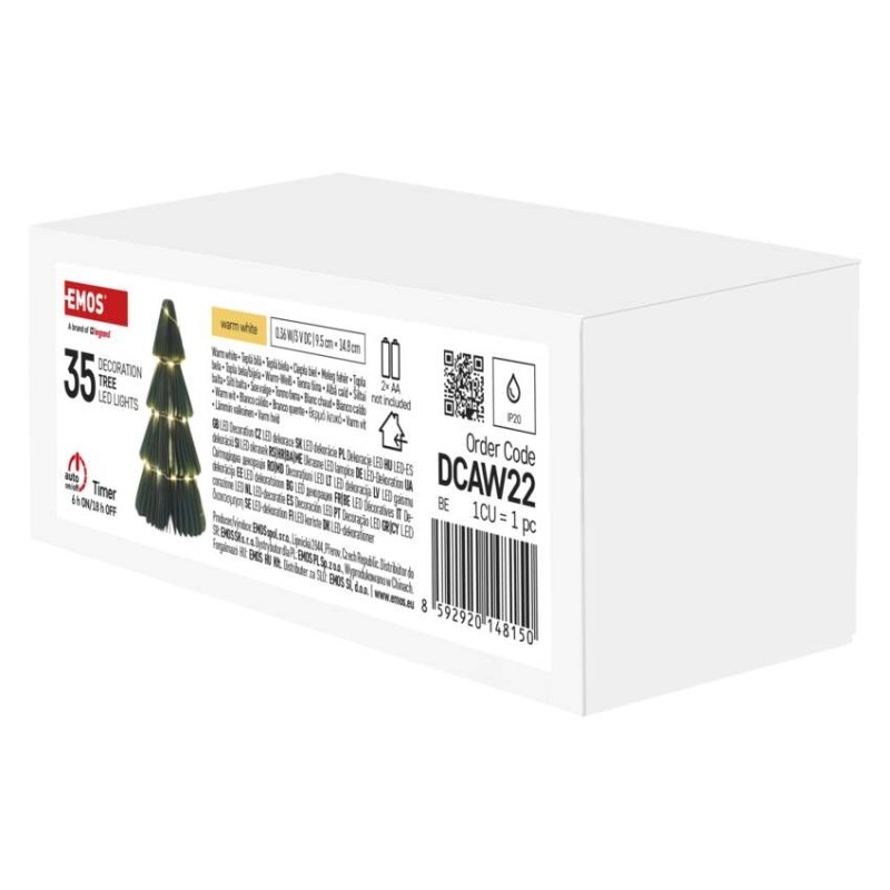 barva drátu: stříbrná|barva světla: teplá bílá|časovač: ano|dálkový ovladač: ne|délka přívodu: 0,3 m|krytí: IP20|materiál: papír|počet LED: 35|použití: vnitřní|příkon: 0,36 W|prodejní obal: 1 ks, krabice|produkt: stromek|rozměr: 9,5 × 9,5 × 14,8 cm|typ napájení: baterie 2× AA (není součástí balení)|vstupní napětí: –|výstupní napětí: 3 V DC|záruční doba: 2 roky|zdroj svícení: LED|životnost: 10 000 hodin