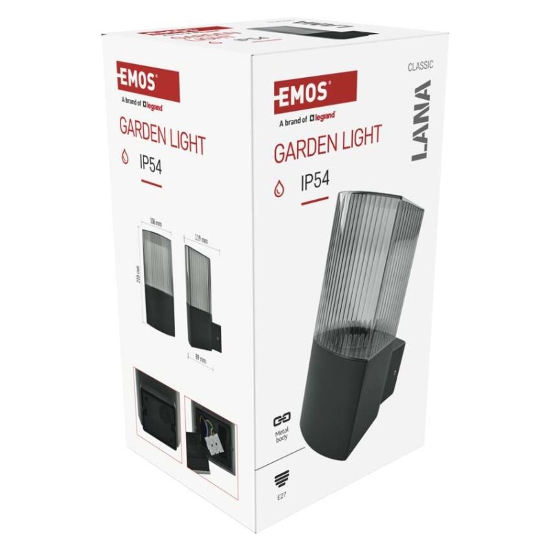 EMOS Zahradní nástěnné svítidlo LANA, 11,7 x 10,6 x 21,8 cm, 1 x E27, 25 W