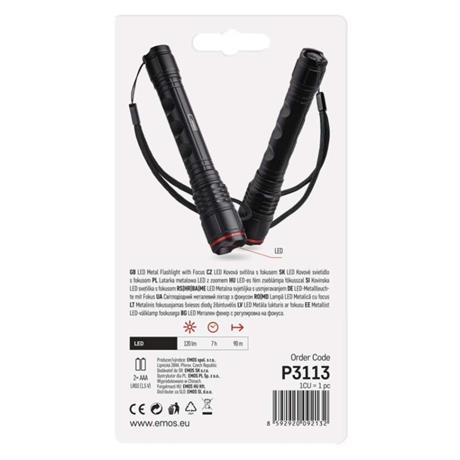 barva: černá|baterie součástí balení: ne|doba nabíjení: neuvádí se|doba svícení: 7 h|doba svícení detail: LED 100 % – 7 h|dosvit: LED 100 % – 90 m|fokus: ano|hmotnost: 48 g|LED indikace nabíjení: neuvádí se|LED indikace stavu akumulátoru: neuvádí se|materiál: hliník|maximální dosvit: 90 m|maximální světelný tok: 120 lm|nabíjecí: ne|napájení: 2× AAA|nárazuvzdornost: ano|počet režimů svícení: 1|příslušenství: neuvádí se|prodejní obal: 1 ks, papírový blistr|režimy svícení: LED 100 %|rozměr: 131 × 21 × 21 mm|speciální funkce: neuvádí se|světelný tok: LED 100 % – 120 lm|typ baterie: LR03 (1,5 V)|typ napájecího konektoru: neuvádí se|voděodolnost: ano (IP44)|vybavení: poutko|záruční doba: 2 roky|zdroj světla: LED|značka: EMOS