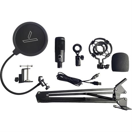 Sada studiového USB mikrofonu STREAMER 2.0 se stojanem, pop filtrem, antivibračním držákem a dalším příslušenstvím, vhodná pro streamování, hraní her či komunikaci s přáteli, jednoduché USB zapojení