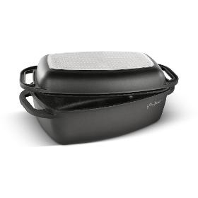 Pekáč. Lamart LT1308. . Objem 3L+5,5L. Rozměr 40X22,5X17CM. Materiál hliník. Povrch nepřilnavý keramický. Barva černá. . Vyrobeno z vysoce odolného hliníku.. Kvalitní hliníkový litý pekáč a grilovací víko s vnitřním nepřilnavým povrchem odolným proti připalování, opatřen silným dnem u obou nádob.. Grilovací víko má speciální tvar vnitřního dna.. Vynikající tepelná vodivost.. Úspora energie a času.. Snadná údržba a čištění.
