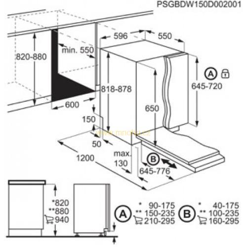 Vestavné rozměry V(min/max)xŠxH (mm): 820/880 x 600 x 550