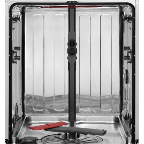 Horní košík má šetrné úchyty na 12 sklenic na víno, 2 skládací držáky, 2 skládací drátěné držáky pro skleničky, 4 měkké špičky, skládací poličky na šálky, nerezové držadlo AEG, Side basket handles