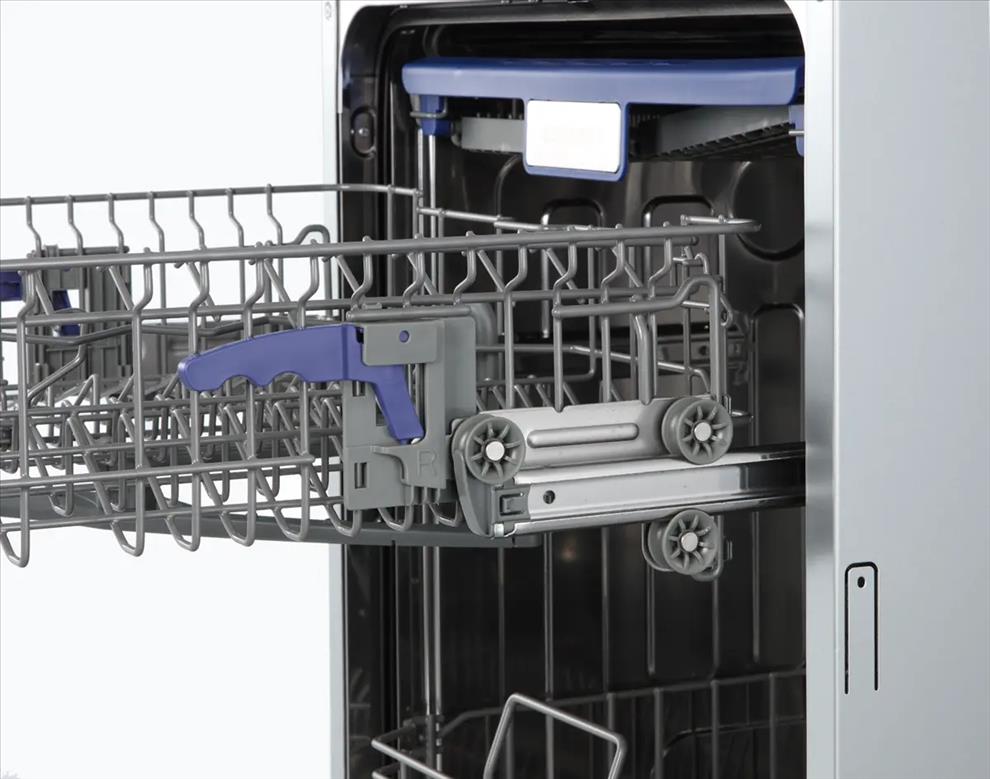 Variabilní příborová zásuvka vám nabízí maximální flexibilitu při mytí. Kdykoliv potřebujete víc místa pro větší nádobí, stačí ji přesunout a získáte tak větší prostor v horním koši. Díky tomu snadno uložíte i objemné kusy, které by jinak do myčky nepasovaly.