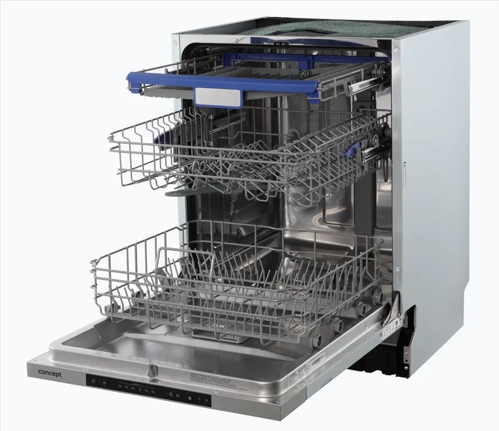 Vestavná myčka nádobí Concept MNV4160N pojme až 14 sad nádobí a nabízí 6 mycích programů. Disponuje posuvnými panty Sliding door, výškově nastavitelným horním košem, variabilní příborovou zásuvkou, dávkovačem typu Slide, funkcí AUTO open a bezpečnostním jištěním AquaStop.