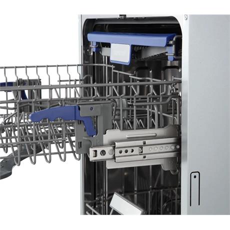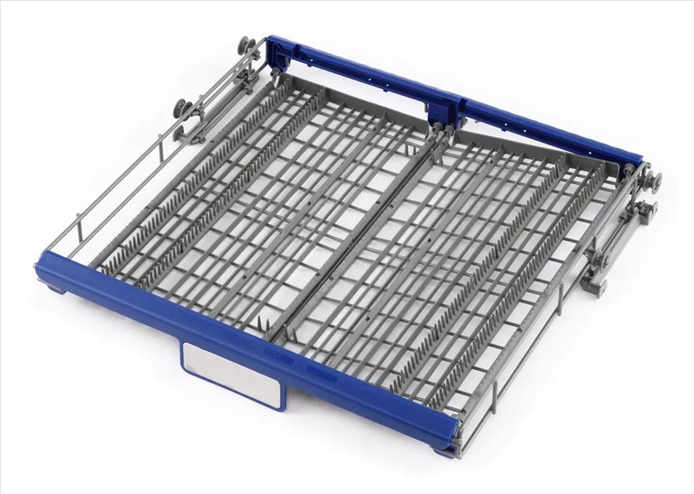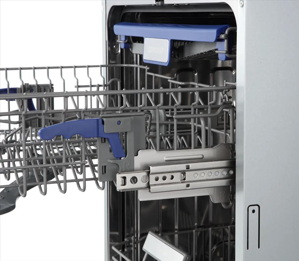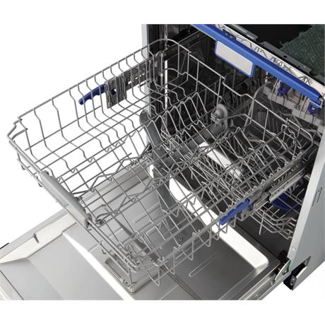 Myčka je vybavena kvalitními teleskopickými pojezdy, které zajišťují plynulý a stabilní pohyb košů. I při plném zatížení je jejich vysunutí snadné a pohodlné, což výrazně usnadňuje vkládání i vyjímání nádobí.