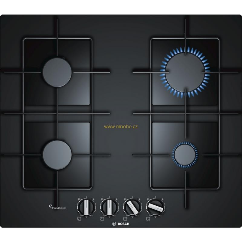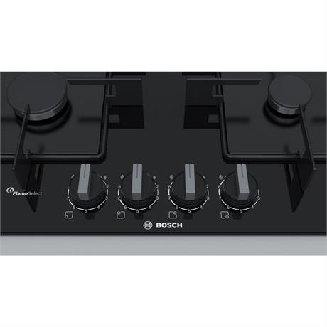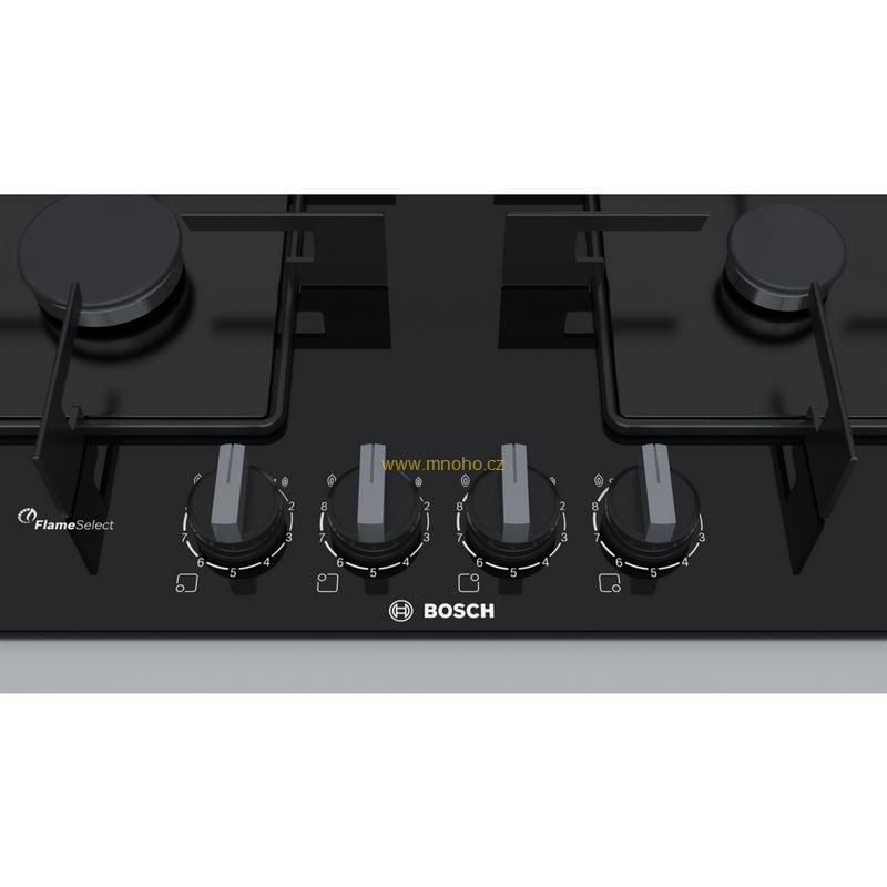 Plynová varná deska BOSCH PPP6A6B80 na tvrzeném skle s fukncí FlameSelect: zaručí perfektní výsledky vaření díky preciznímu nastavení stupně výkonu plynového hořáku v rozsahu 1 až 9 stupňů. BOSCH PPP6A6B80 má integrované zapalování v ovládacím knoflíku.