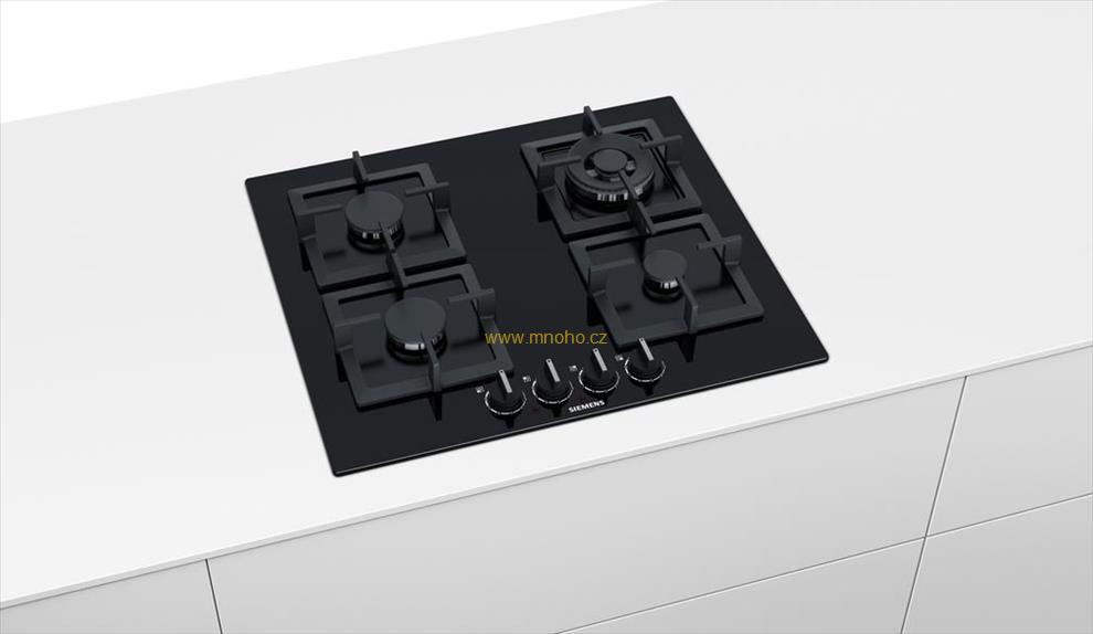 Plynová varná deska Siemens EP6A6HB20 z černého tvrzeného skla o šířce 60cm. Vlastní 4 varné zóny, včetně WOK hořáku, který je perfektní pro přípravu asijských pokrmů.