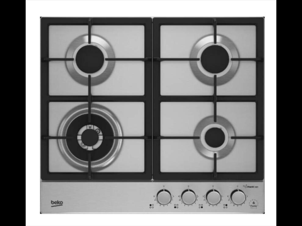 Plynová varná deska Beko HIAW64226SXE v nerezovém provedení má 4 plynové hořáky o různém průměru a výkonu. Mechanické ovládání varné desky je umístěno na přední straně a má integrované zapalování hořáků. Všechny hořáky jsou vybaveny bezpečnostní pojistkou, která zabraňuje zhasnutí plamene. Ochranné rošty jsou vyrobeny z litiny. Šířka varné desky je 60 cm.