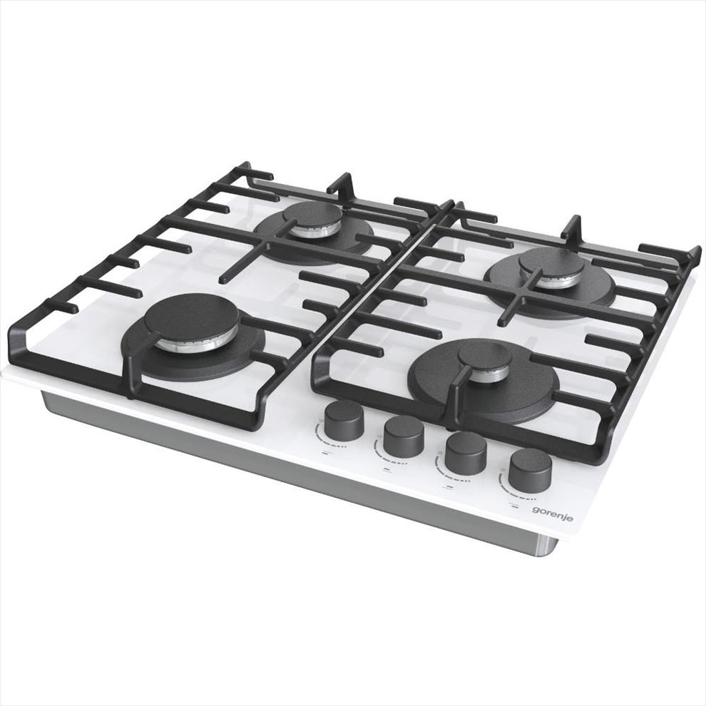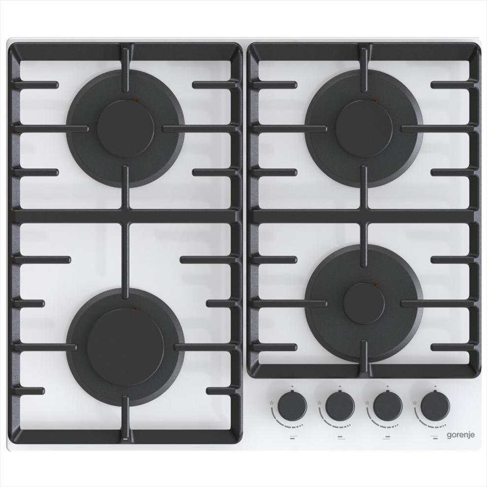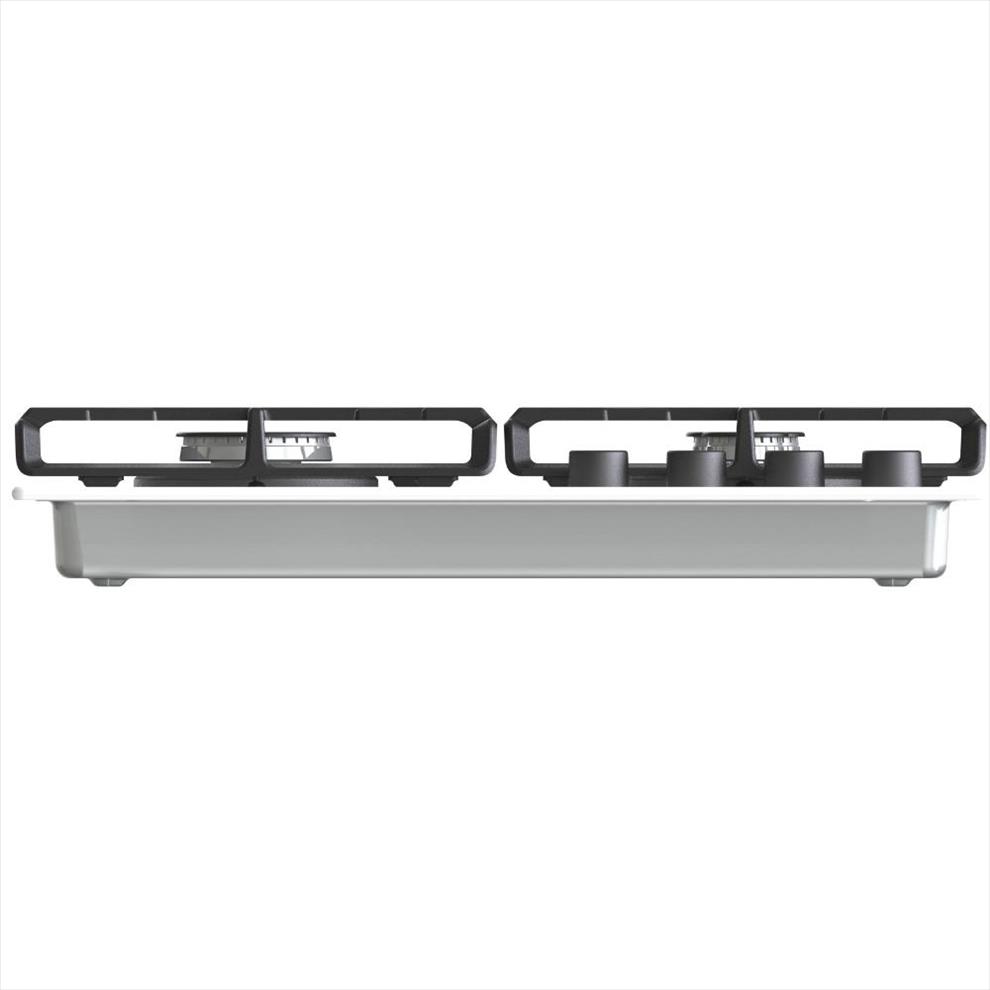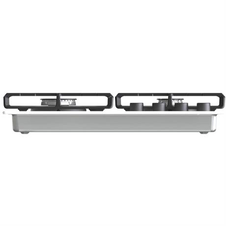Plynová varná deska, plyn na tvrzeném skle, 4 plotýnky, celkový výkon plynu 7650 W, barva bílá, litinové nosné mřížky, příkon 5 W