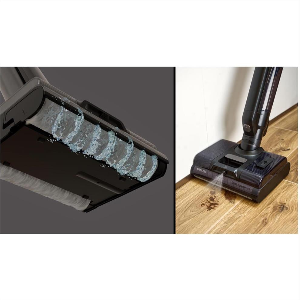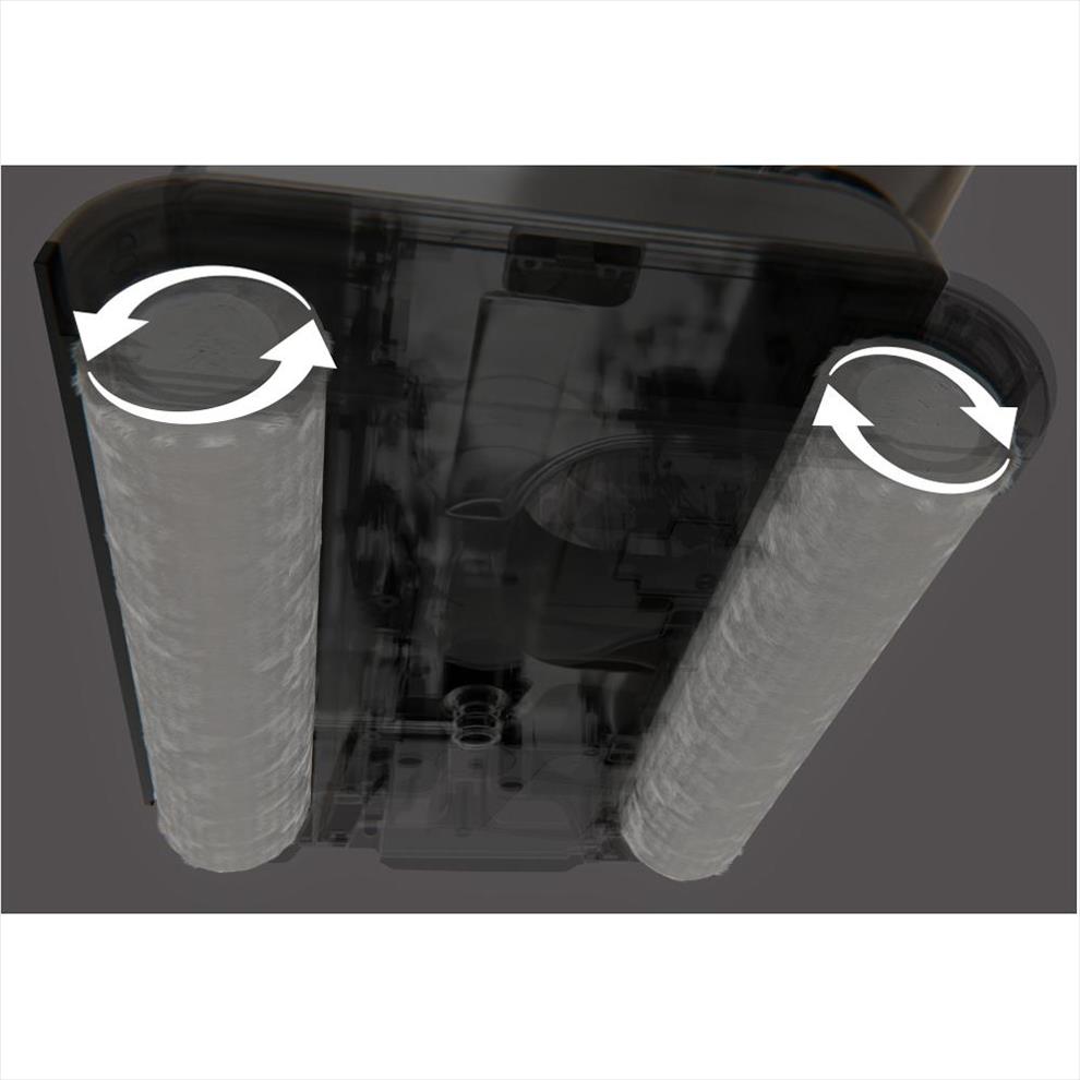 Systém Dual Power Mop s dvěma rotačními kartáči, které se otáčejí proti sobě, zvyšuje účinnost čištění a zároveň umožňuje, aby se vysavač po podlaze pohyboval téměř sám – stačí ho jen vést.