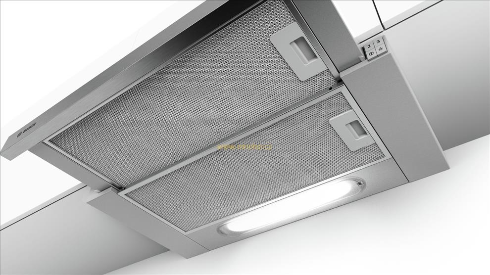 Plochý výsuvný odsavač par, lze jej téměř neviditelně zapustit do horní skříňky a tak je postaráno o čistou linii kuchyně.
