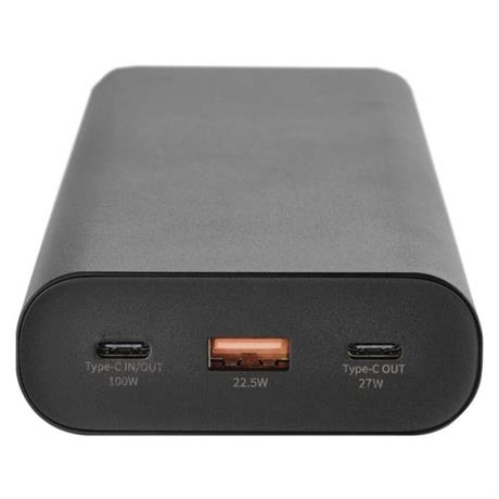 auto ON/OFF: ano|barva: černá|doba nabíjení: 2,5 hodiny|hmotnost: 580 g|kapacita akumulátoru: 27 000 mAh|LED indikátor nabíjení: ano|LED indikátor stavu baterie: ano|materiál: hliník|max. vstupní výkon: 100 W|max. výkon drátového nabíjení: 100 W|ochrana proti podbití: ano|ochrana proti přebití: ano|ochrana proti přetížení: ano|ochrana proti zkratu: ano|passthrough: ano|přibalený kabel: USB-C/USB-C|prodejní obal: 1 ks, papírová krabička|provozní teplota: 0 °C až +40 °C|rozměr: 190 × 74 × 27 mm|rychlé nabíjení: PD 100 W + PD 27 W|typ akumulátoru: Li-Ion 3,7 V|typ vstupního rozhraní: 1× micro USB, 1× USB-C|typ výstupního rozhraní: 1× USB-A, 1× USB-C|záruční doba: 2 roky