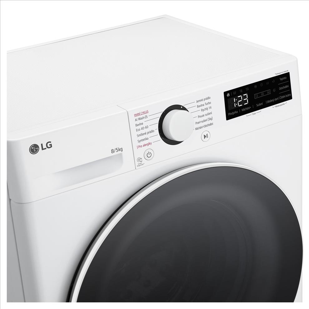 Pračka se sušičkou LG FCR5A85WW s předním plněním v bílé barvě s černými dveřmi z tvrzeného skla má kapacitu na praní 8 kg a sušení 5 kg prádla. Maximální rychlost odstřeďování je 1 200 otáček za minutu. Nabízí 12 pracích programů, 8 přídavných možností a 4 programy sušení. Je vybavena motorem Inverter Direct Drive™ s 10letou zárukou, systémem AI DD, parním programem Steam™, rychlým programem Bavlna Turbo, inteligentní diagnostikou, odloženým startem, ovládacím panelem v češtině, dětskou pojistkou a dalšími praktickými funkcemi.