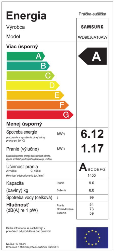 Spotřeba energie praní/sušení 6,12 kWh/cyklus