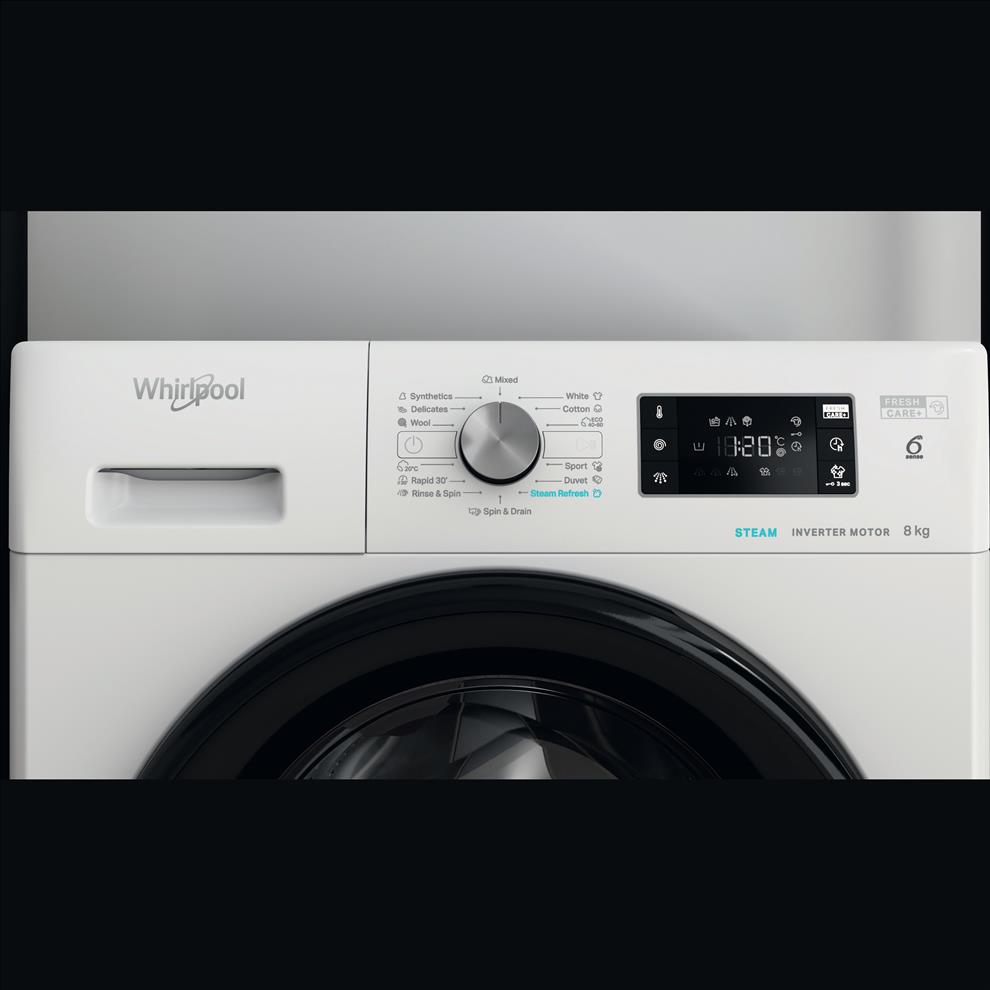 Tato pračka Whirlpool s kapacitou bubnu 8 kg poskytuje veškerý potřebný prostor pro vaše prádlo.