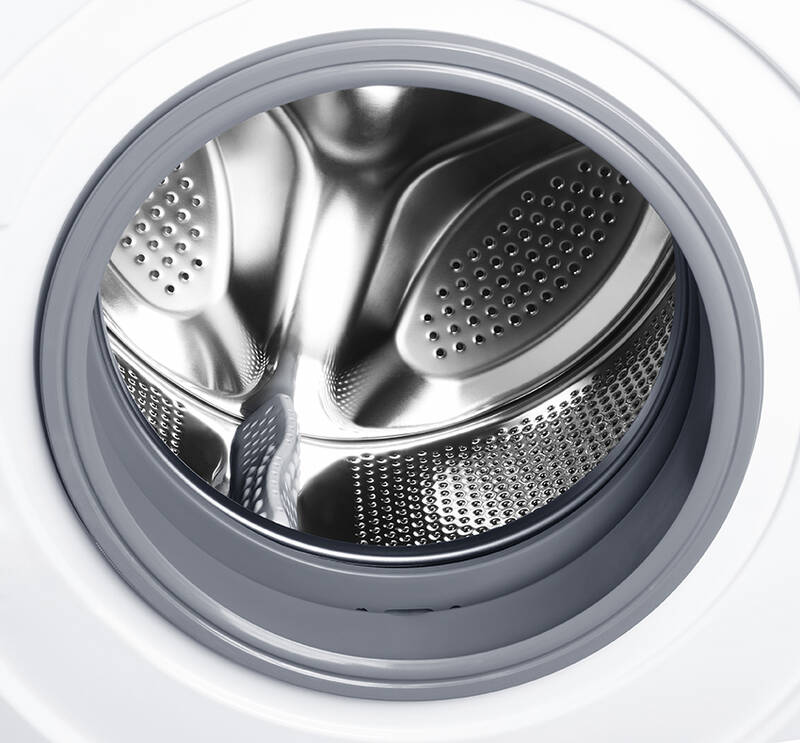 Pro maximální komfort můžete nastavit odložený start a přijít k již vypranému oblečení, které stačí usušit. Ukazatel zbytkového času vám zobrazí, kdy prací cyklus skončí. Otevírání dvířek je levé a během praní spotřebič dosahuje hlučnosti 80 dB. Dosahuje spotřeby 43 l na jeden cyklus s množstevní automatikou regulace vody. Dotkněte se kvalitně zpracovaného bubnu, který je ideální i pro jemné látky.