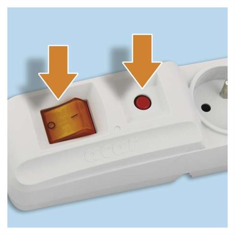 Ta pojistka slouží pouze pro případy, že je do zásuvek zapojena větší zátěž než 10A, potom tato pojistka vypne napájení a následně se musí resetovat.