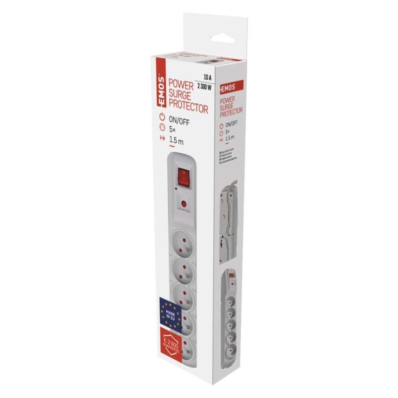 EMOS Přepěťová ochrana – 5 zásuvek 1,5m, šedá
