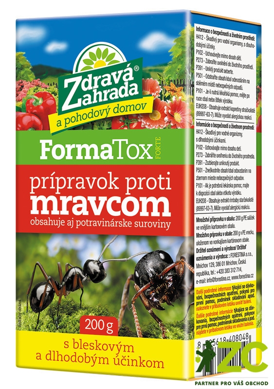 BioFormaTox Forte (FormaTox Forte) je prášek s účinkem proti mravencům vhodný k použití v interiéru i exteriéru (v budovách a jejich okolí), pro neprofesionální použití. Působí kontaktně nejlépe ve formě postřiku či zálivky přímo na hmyz anebo poprachem.