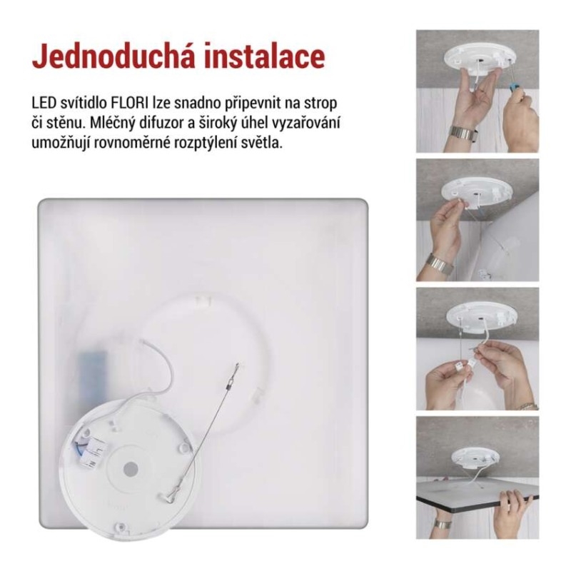 barva světla: neutrální bílá|barva těla: černá|dálkový ovladač: ne|do chodby a na schodiště: ano|do dílny a garáže: ne|do kanceláře: ne|do koupelny: ne|do kuchyně: ano|do obýváku, ložnice a dětského pokoje: ano|dosah senzoru: neuvádí se|flicker-free: neuvádí se|frekvence: 50/60 Hz|index podání barev (CRI): Ra > 80|kategorie: ESSENTIAL|krytí: IP20|materiál difuzoru: plast|materiál LGP: neuvádí se|materiál těla: plast|montážní otvor: neuvádí se|možnost stmívání: ne|náhrada za žárovku: 130 W|napětí: 220–240 V~|na zahradu a balkon: ne|pohybový senzor: ne|příkon: 22 W|prodejní obal: 1 ks, krabice|proud: 165 mA|řada: FLORI|rozměr: 420 × 420 × 29 mm|světelná účinnost: 100 lm/W|světelný tok: 2 200 lm|teplota chromatičnosti: 4 000 K|tvar: čtverec|typ difuzoru: mléčný|typ svítidla: klasické svítidlo|účiník: > 0,5|UGR<: neuvádí se|úhel vyzařování: 110°|umístění: stropní/nástěnné|výstupní proud ze zdroje: neuvádí se|záruční doba: 2 roky|zdroj světla: LED|životnost: 15 000 hodin|způsob montáže: p