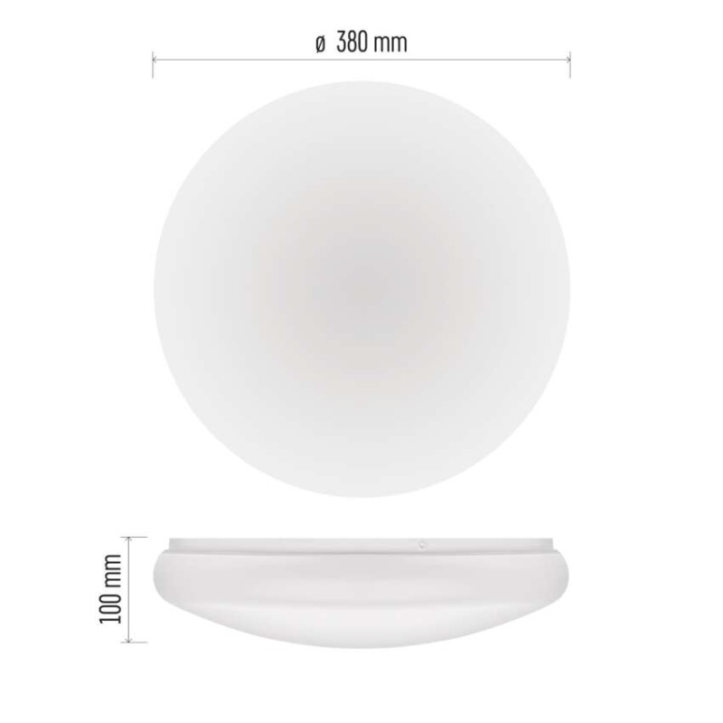 barva světla: neutrální bílá|barva těla: bílá|dálkový ovladač: ne|další funkce: –|do chodby a na schodiště: ano|do dílny a garáže: ano|do kanceláře: ano|do koupelny: ano|do kuchyně: ano|do obýváku, ložnice a dětského pokoje: ano|dosah senzoru: –|flicker-free: nebliká|frekvence: 50/60 Hz|index podání barev (CRI): Ra > 80|jazyky aplikace: –|kategorie: PROFI|kompatibilita: –|krytí: IP44|materiál difuzoru: plast|materiál LGP: –|materiál těla: ocelový plech|montážní otvor: –|možnost stmívání: ne|náhrada za žárovku: 170 W|napětí: 220–240 V~|na zahradu a balkon: ano|notifikace do mobilní aplikace: ne|obsah balení: –|ovládání hlasovými asistenty: ne|podporované OS: –|pohybový senzor: ne|přenosová frekvence: –|příkon: 19 W|prodejní obal: 1 ks, krabice|protokol: –|proud: 144 mA|řada: TIVI|rozměr: průměr 380 × 100 mm|světelná účinnost: 158 lm/W|světelný tok: 3 000 lm|teplota chromatičnosti: 4 000 K|tvar: kruh|typ difuzoru: mléčný|typ svítidla: klasické svítidlo|účiník: > 0,5|UGR<: –|úhel vyzařo